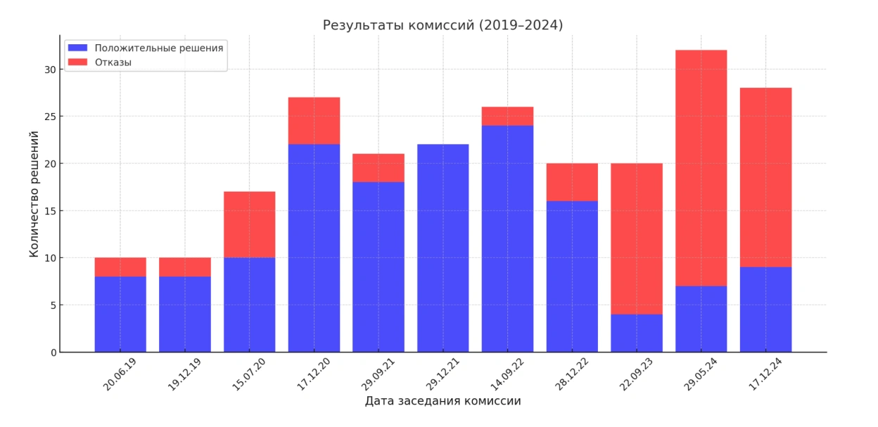 З 2023 года камісіі выдаюць 70-80% адмоў, пры гэтым не тлумачаць прычын і не даюць магчымасці абскардзіць рашэнне. Хіба што прапануюць зноў прайсці камісію, але праз адну — выходзіць, гэта яшчэ год чакання.
