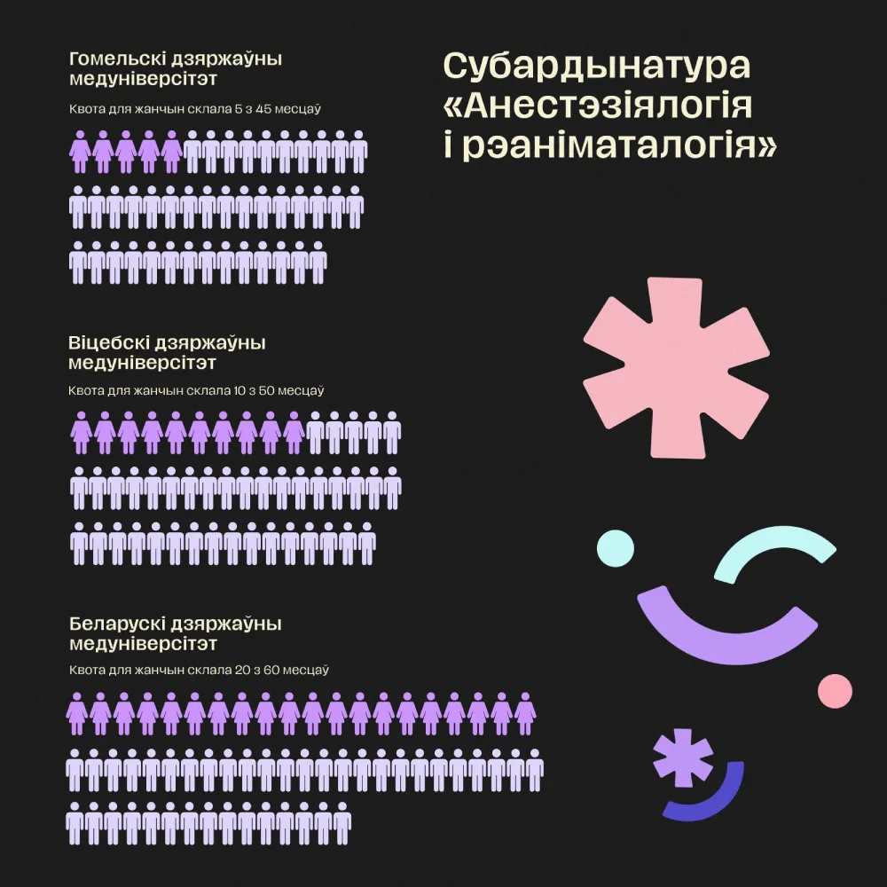 Больш за тое, у Беларусі гендарная няроўнасць замацоўваецца на ўзроўні дзяржавы: загад Міністэрства аховы здароўя № 879 (2023) увёў паасобныя квоты па поле ў медыцынскай субардынатуры, фактычна абмежаваўшы для жанчын доступ да больш прэстыжных і высокааплатных спецыяльнасцяў.